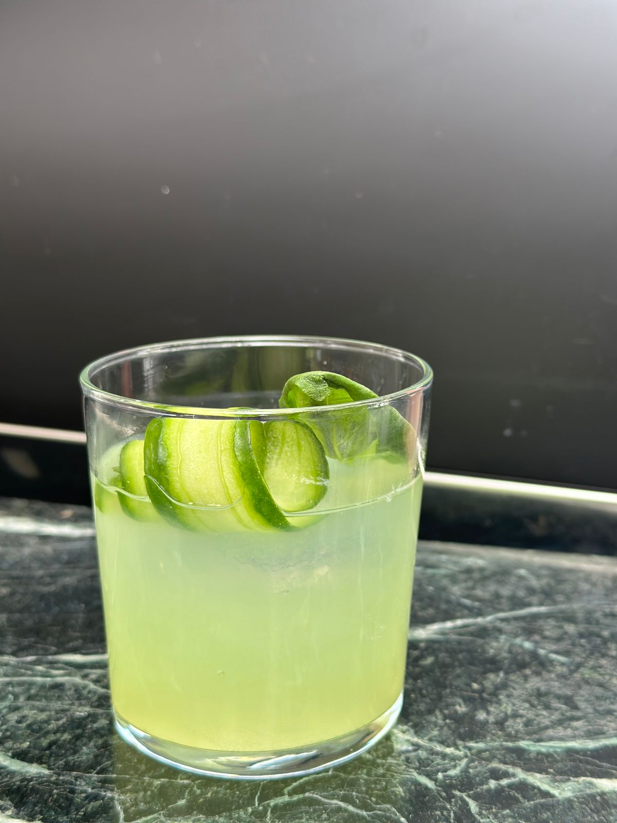 Hendricks, basil, ginger,cucumber, lemon, sugar (*Hendricks,borzilok gjethe,ginger,kastravec,lemon,sheqer)