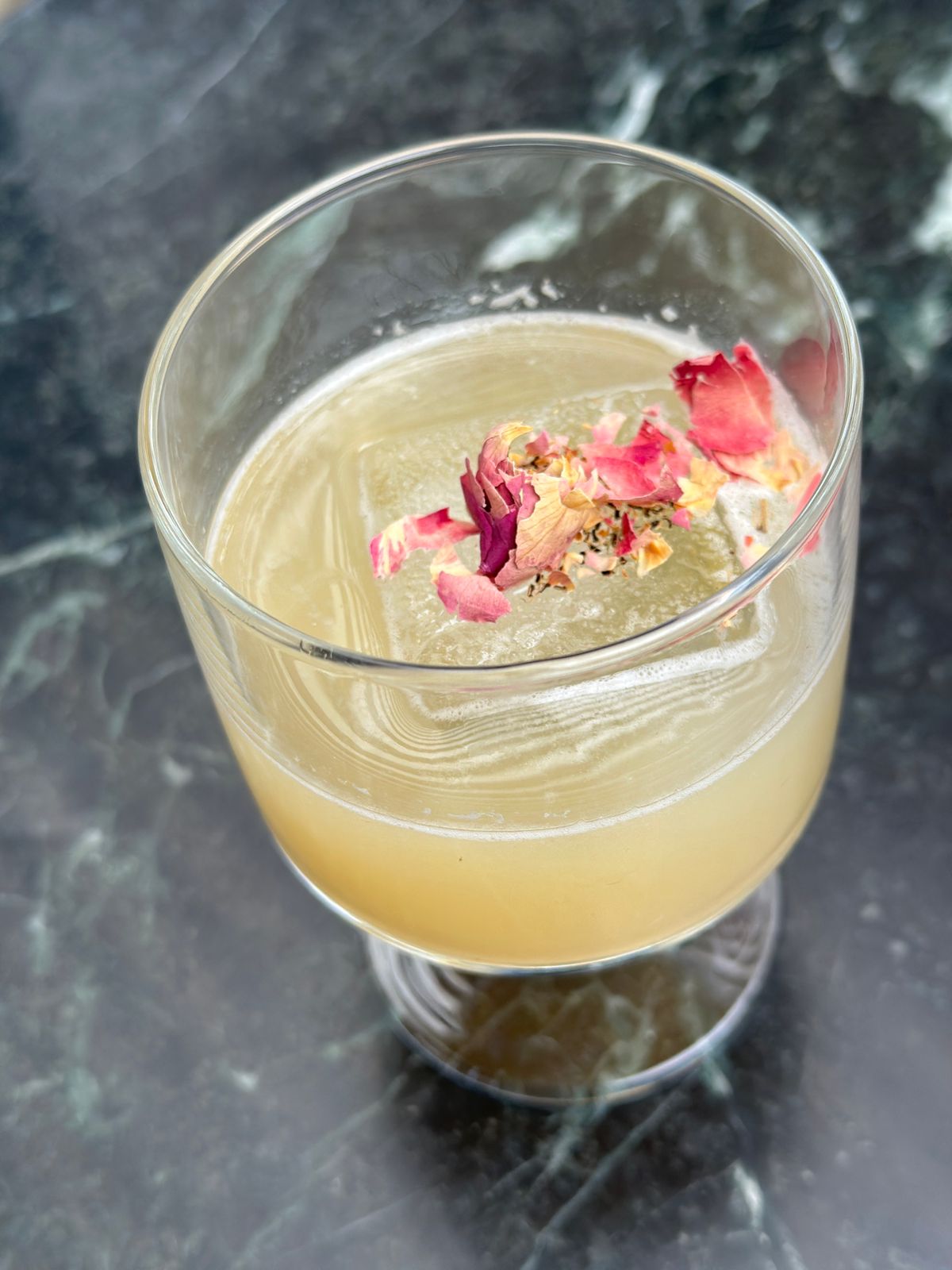 Tequila Infused (chamomile ,African roses), Orgeat, Simple syrup, Lemon juice... A combination of wild African roses, chamomile and 100 percent pure agave tequila. A magical taste awaits you